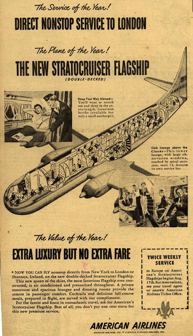 In November 1948, AEA merged with American Airlines to become American Overseas Airlines (AOA) and Pan American purchased AOA from American in 1950 and merged their aircraft, and routes, in to their system. American wouldn’t serve Europe again for over 30 years, until it launched DFW-London Gatwick services in 1982.